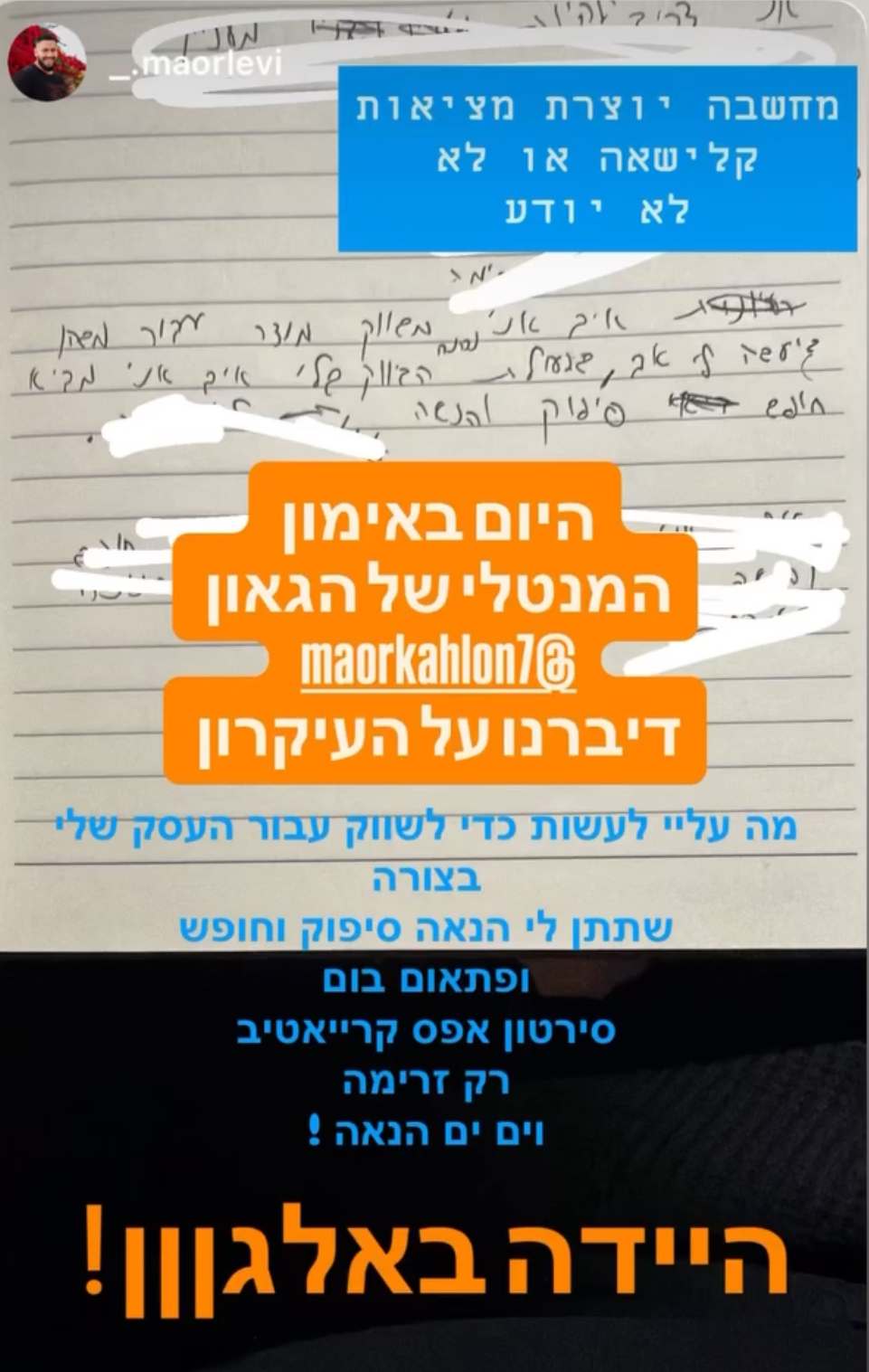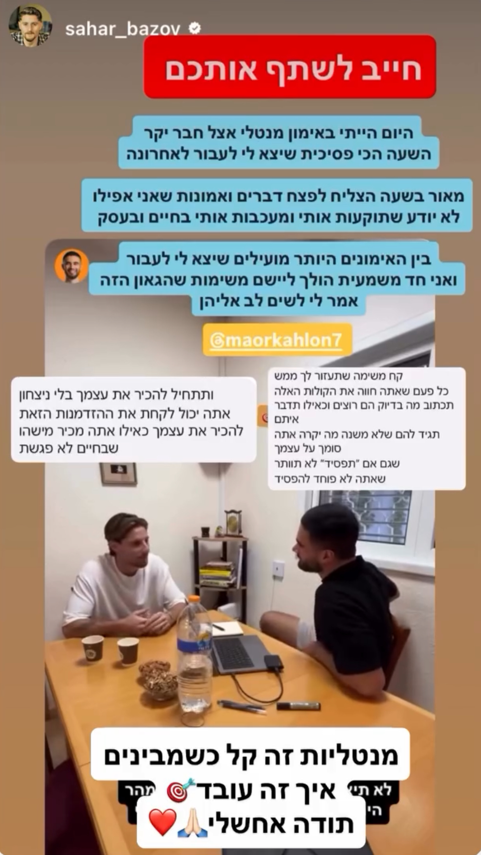 אחרי 4 שנים בעולם העסקים החלטתי להפוך למאמן מנטלי וזה מה שאני עושה בכמעט שנתיים האחרונות.
